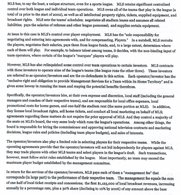 MLS’ franchise, faux-competition structure, as discussed by the Court in Fraser vs. Major League Soccer: